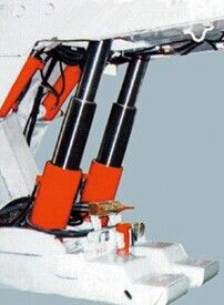 双伸缩立柱主要由外缸、中缸、活柱、大导向套、小导向套、底阀及密封件、连接件组成。
